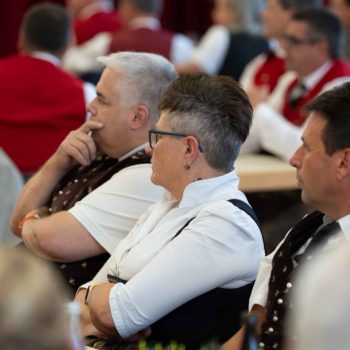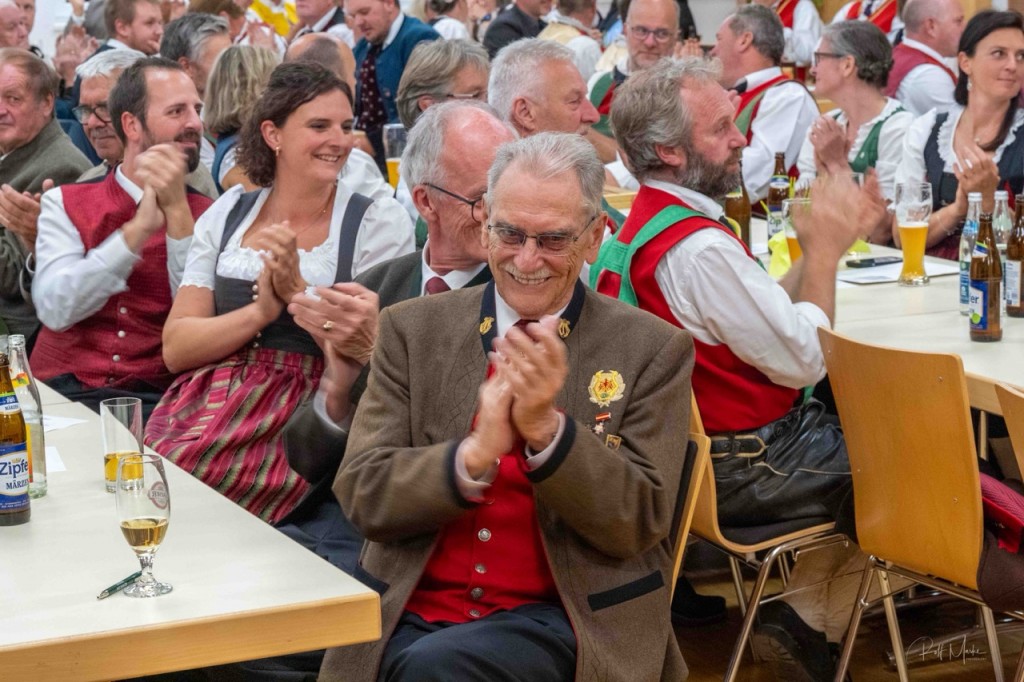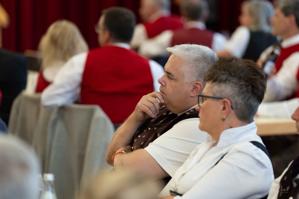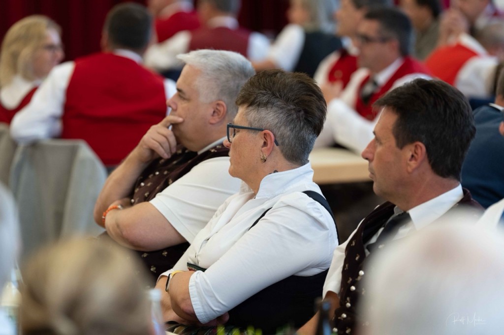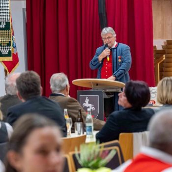 KAMERADSCHAFT UND TRADITION. Die Jubilarinnen und Jubilare halten seit vielen Jahren die Tradition ihrer Musikkapellen hoch, pflegen ein besonderes Kulturgut und eine enge Kameradschaft. Ihre Leidenschaft für die Musik, ihr Teamgeist und ihre Offenheit gegenüber Neuem machen sie auch zu wichtigen Vorbildern für alle Jungmusiker. „Ihr seid Leuchttürme in unserer Blasmusikwelt“, zollt Horst Pürstl ihnen Respekt und fährt fort: „Die Musik ist ein vielfach geäußertes Gefühl, das uns alle hier im Festsaal auf einzigartige Weise verbindet. Sie ist die Sprache, die über Worte hinausgeht und die Essenz menschlicher Erfahrungen einfängt.“ Die Jubilarinnen und Jubilare erweiterten stets ihr Repertoire, stellten sich neuen musikalischen und gesellschaftlichen Herausforderungen, ohne dabei je ihre musikalischen Wurzeln und Traditionen aus den Augen zu verlieren. „Ihr alle seid Bewahrer einer musikalischen Kultur und sorgt dafür, dass sie auch für zukünftige Generationen erlebbar bleibt. Mit Eurem Engagement und Eurer Professionalität zeigt Ihr jungen Menschen, wie wichtig es ist, Disziplin, Leidenschaft und Ausdauer aufzubringen, um die musikalischen Träume eines jeden Einzelnen zu verwirklichen.“ Mit berührenden Worten dankte Horst Pürstl den 81 zu ehrenden Blasmusikanten und betonte auch ihr besonderes soziales Engagement. „Möget Ihr auch weiterhin unsere Herzen mit Eurer Musik erhellen und uns daran erinnern, wie wichtig es ist, die Schönheit der Musik gemeinsam mit vielen Menschen zu teilen“, schloss der AMB-Obmann.