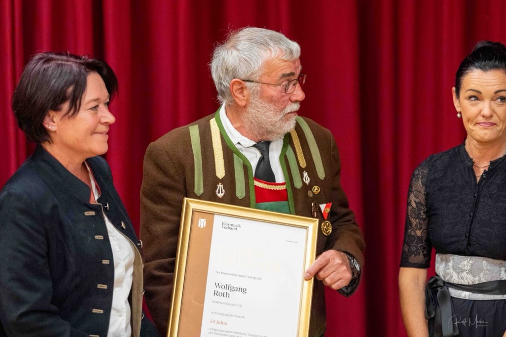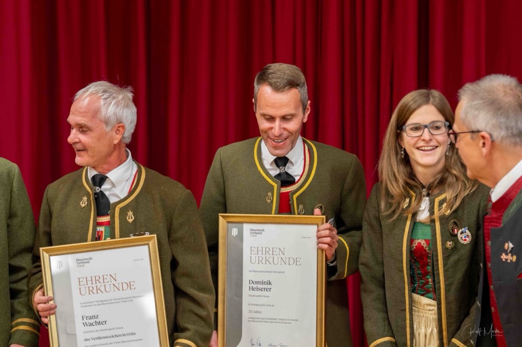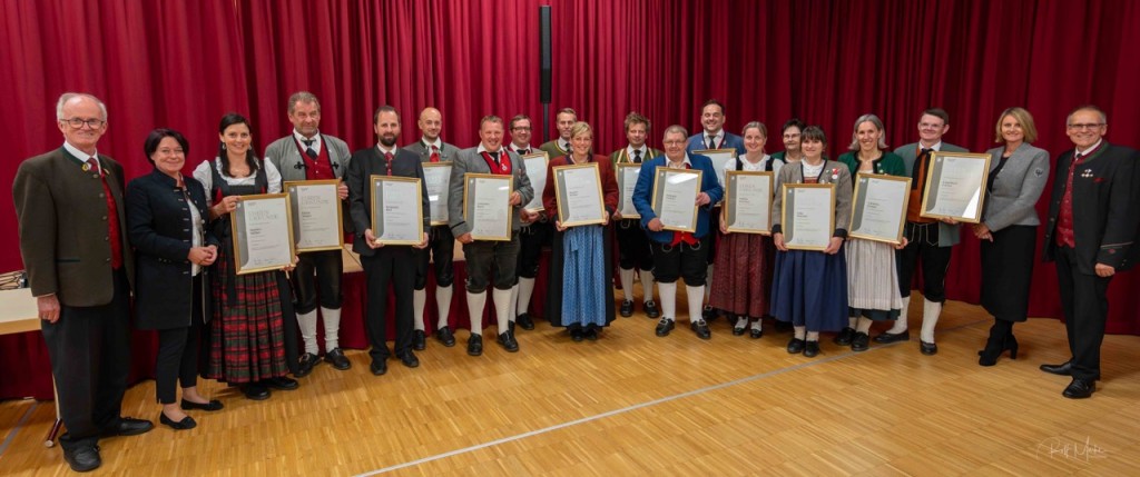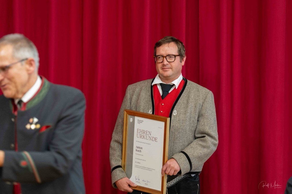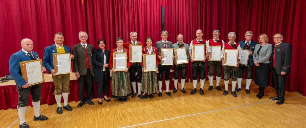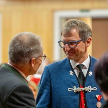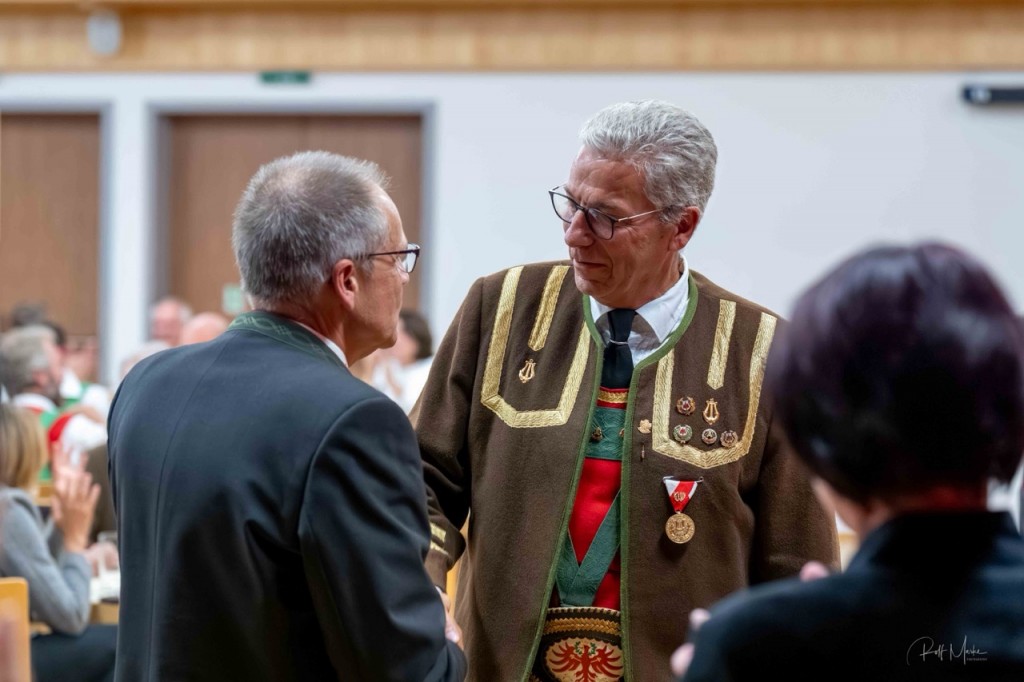 „Kultur“ bezeichnet im weitesten Sinne alles, was der Mensch selbst gestaltend hervorbringt. Als Zusammenspiel versteht man das Resultat des Wirkens mehrerer Faktoren. Harmonie ist die Vereinigung von Entgegengesetztem zu einem Ganzen“, nannte Horst Pürstl die wohl wesentlichen Bestandteile der Musik in seiner Ansprache. Gerade in den Kapellen der Blasmusik ist diese gemeinsame Kultur, das Zusammenspiel vieler die verbindende Harmonie. Beim Festakt in Grän wurden jene vor den Vorhang geholt und besonders geehrt, die dieses Zusammenspiel über Jahrzehnte pflegen, die Harmonie fördern und diese verbindende traditionelle Kultur leben. In diesem Jahr waren es 81 Jubilarinnen und Jubilare aus den fünf Talschaften.
